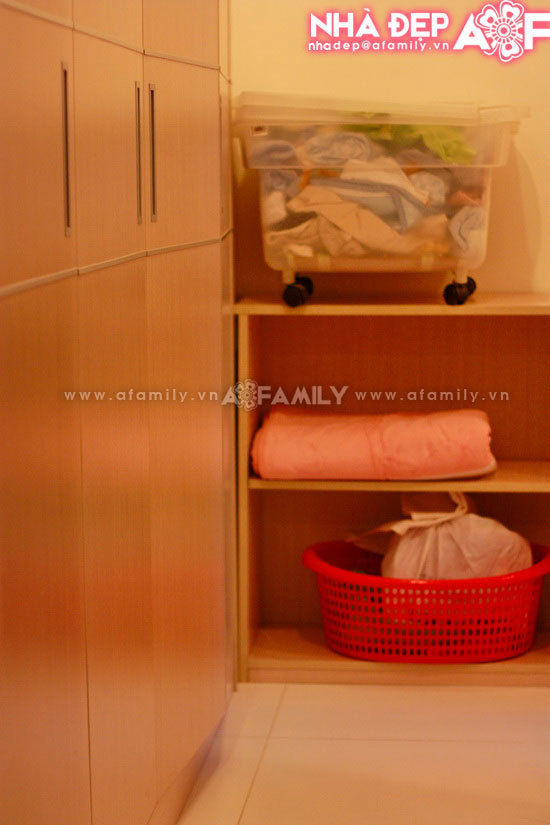 Tủ quần áo đặt ngay trong phòng vệ sinh rất tiện lợi và tiết kiệm không gian.