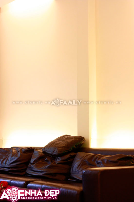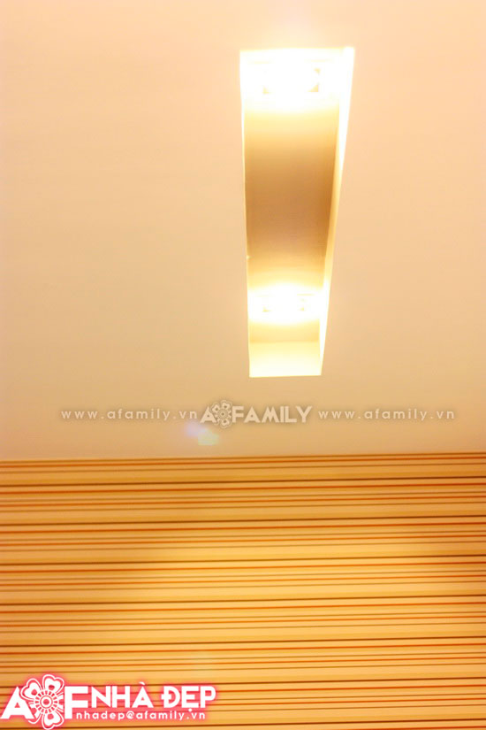 Có thể nói, ánh sáng là phần tôi ưng ý nhất trong toàn bộ thiết kế của ngôi nhà. Chúng tôi đã lựa chọn kiểu dáng và vị trí để lắp đặt chúng sao cho thật hợp lý và hài hoà. Tận dụng trần nhà, góc tường, khoảng trống nơi giường ngủ, sofa,…vợ chồng tôi đã lắp các bóng đèn trang trí mang màu vàng chủ đạo. Như vậy vừa đảm bảo được ánh sáng cho không gian vừa tạo nên sự ấm áp nơi khoảng trống.