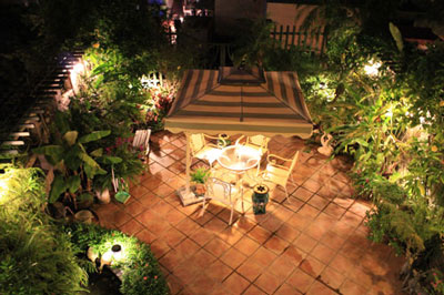 Khu vườn lung linh trong ánh đèn đêm.